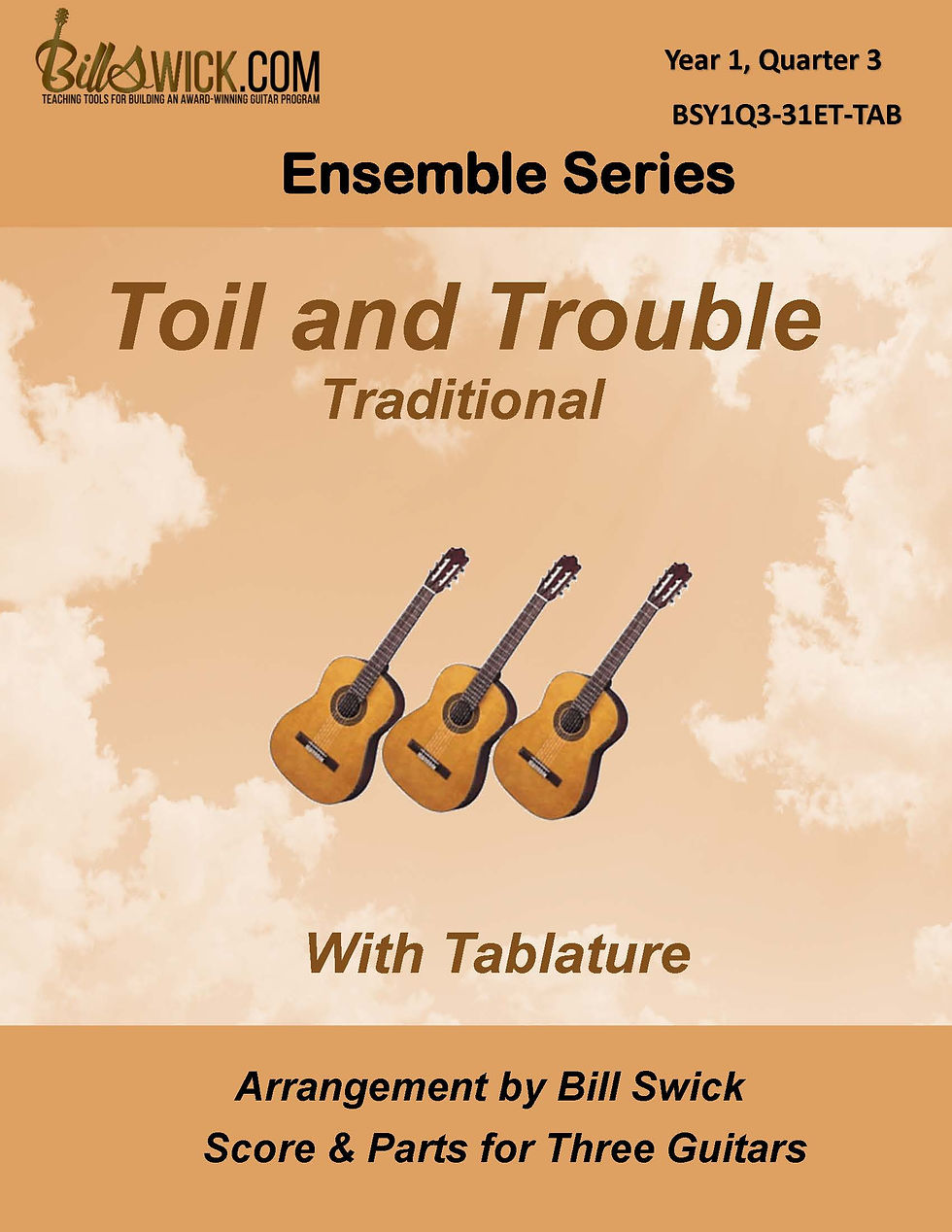 This text is intended to be a supplement to any beginning guitar text, or it also may be a stand-alone text. As a classroom guitar teacher, it is necessary to have plenty of classroom material to fill the class time and keep students active in learning. Most published beginning guitar methods are intended for individual use and not for the classroom. There is rarely enough materials for classroom activities. Quarter One: Notes on the First 3 Strings in First Position offers 68 pages of materials. Most school quarters last 45 instructional days. There is enough material for more than a new page every single day.